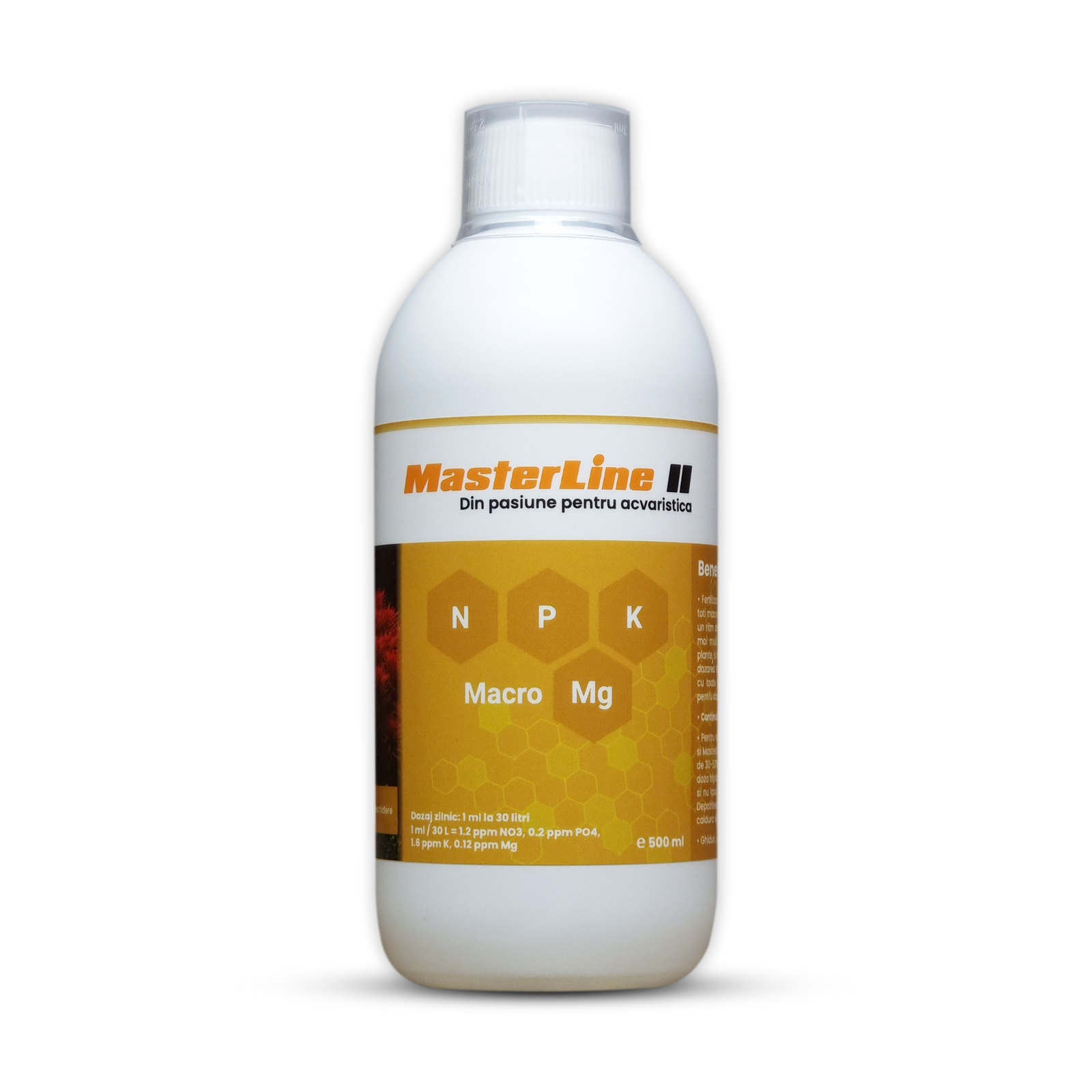 MasterLine II contine toate macro elementele necesare plantelor, intr-un singur flacon: 0.81% N, 0.20% P, 4.8% K, 0.36% Mg
