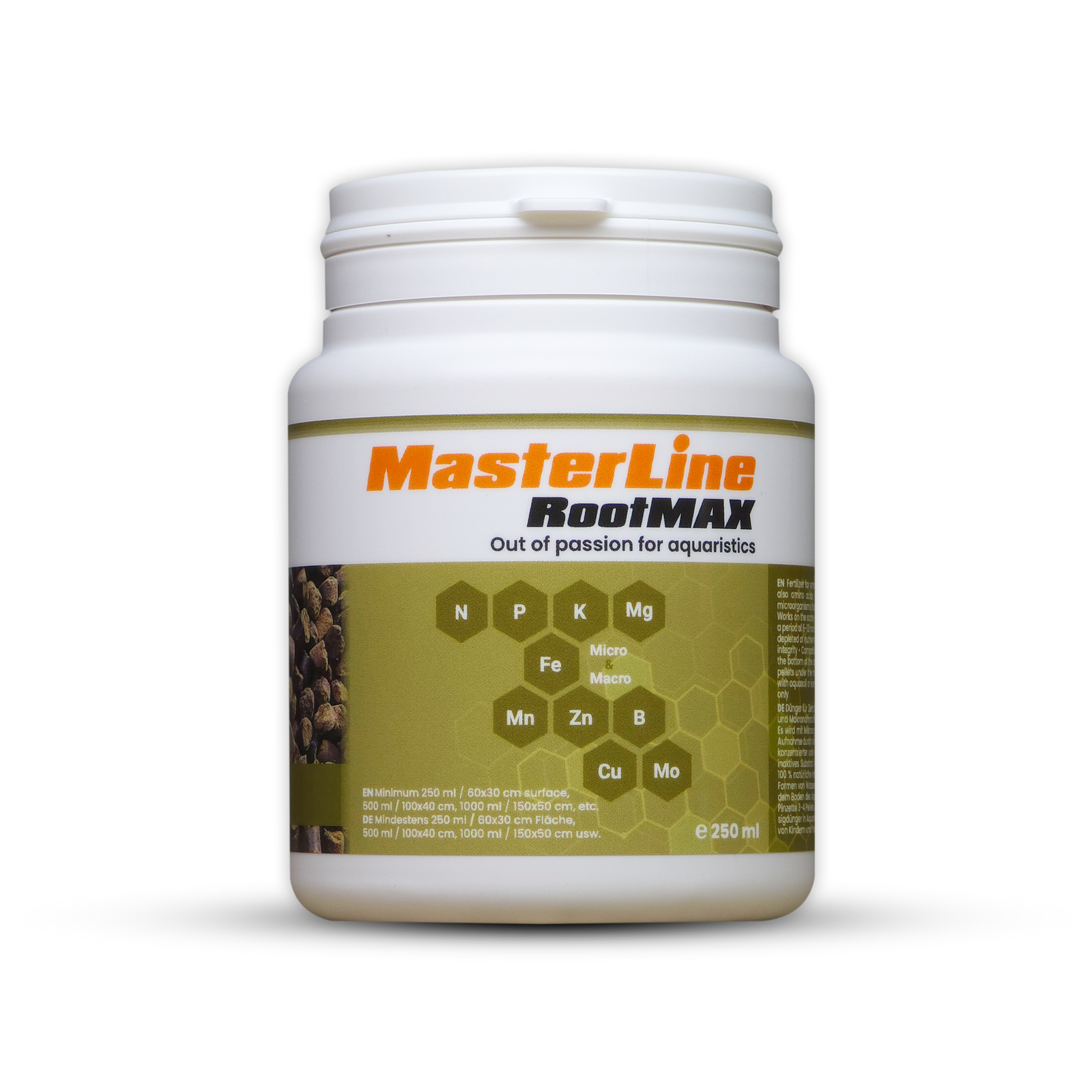 • Imprastie peletele RootMAX intr-un mod egal pe fundul acvariului, si adauga cel putin 4-5 cm de substrat peste ele