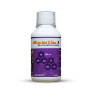 MasterLine I contine toate micro elementele necesare plantelor, intr-un singur flacon: 0.21% Fe, 0.07% Mn, 0.05% Zn, 0.04% B, 0.009% Cu, 0.006% Mo
